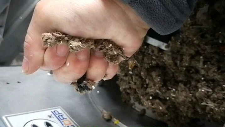▌紙漿廢渣擠壓脫水前后對(duì)比 / Compared before and after extrusion dehydration